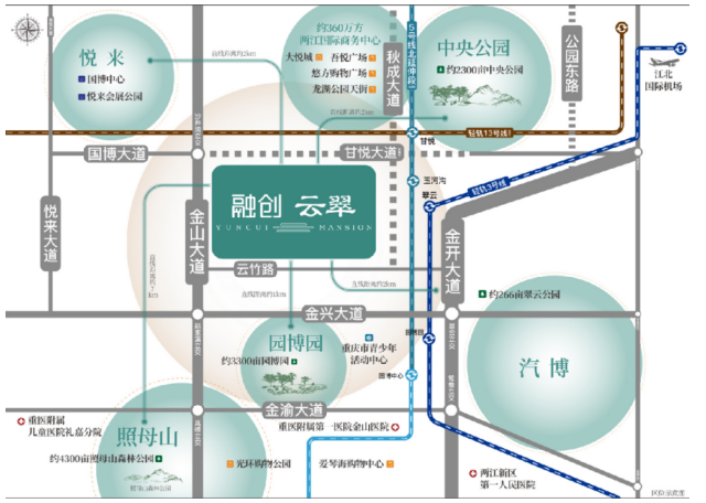 融创云翠项目,位于两江新区翠云多功城片区,是重庆传奇财富主轴金开大道的最后留白地,金开大道近20年的发展红利和资源沉淀,都在这块土地之上得到体现。