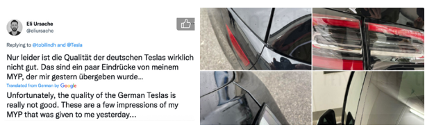 虽然登陆柏林后,特斯拉目前看上去很无敌,但是特斯拉也有自己的潜在问题:做工一直不敢恭维,售后服务也很“节俭”。
