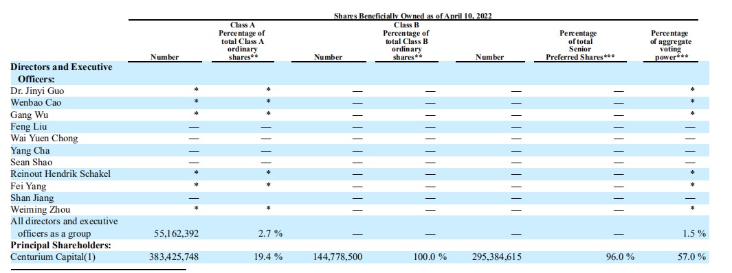 据瑞幸2021年财报,截至2022年4月10日,大钲资本持有瑞幸19.4%的A类股、100%的B类股、96%的高级可转债,拥有57%的投票权。