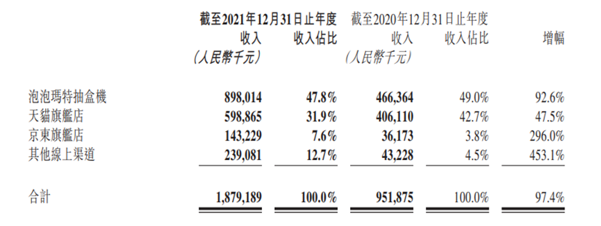 一直以来,天猫旗舰店、泡泡抽盒机、葩趣和其他中国主流电商平台是泡泡玛特的线上渠道布局。我们注意到,在上月公布的业绩报告中,线上渠道释放出巨大的销售能量。
