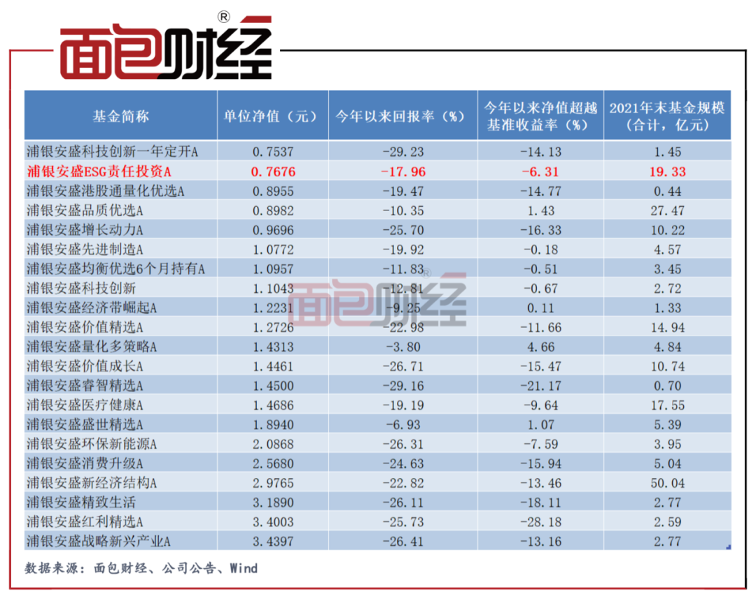 ESG主题明星基金:浦银安盛ESG责任投资混合A净值跌至0.8元以下