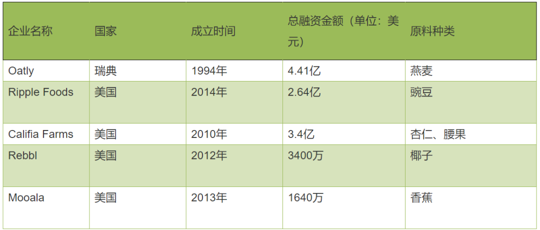 在人们的想象中,土豆和牛奶结合出的黄色粘液,并不能带给人们开胃、营养的感觉,Dug Drink则给出了以下理由:土豆营养丰富(几乎含有人类需要的所有营养)、土豆最可持续(任何地方种植,容易生长,更低的碳足迹),它甚至可以在太空中生长。Dug Drink的尝试代表着植物奶的植物品种拓宽到了一个新的领域。 部分植物奶公司一览如下: