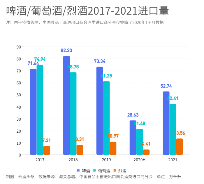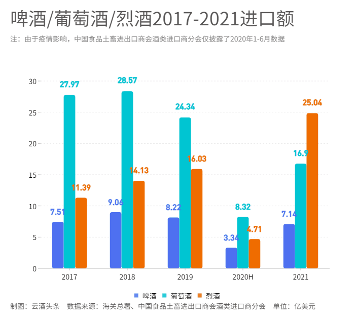(注:由于疫情影响,中国食品土畜进出口商会酒类进口商分会仅披露了2020年1-6月数据)