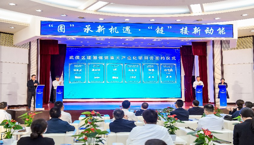 实施产业建圈强链行动,是成都推动产业高质量发展的重点任务。4月20日,由中共成都市武侯区委、成都市武侯区人民政府主办的“‘圈’承新机遇·‘链’接新动能——武侯区建圈强链重大产业化项目云签约仪式”顺利举行。活动采取线上直播的形式,邀请500余家“建圈强链”签约企业、授牌链主企业,各产业功能区、产业部门、街道办事处目标企业参与,观看人数达5万人次。