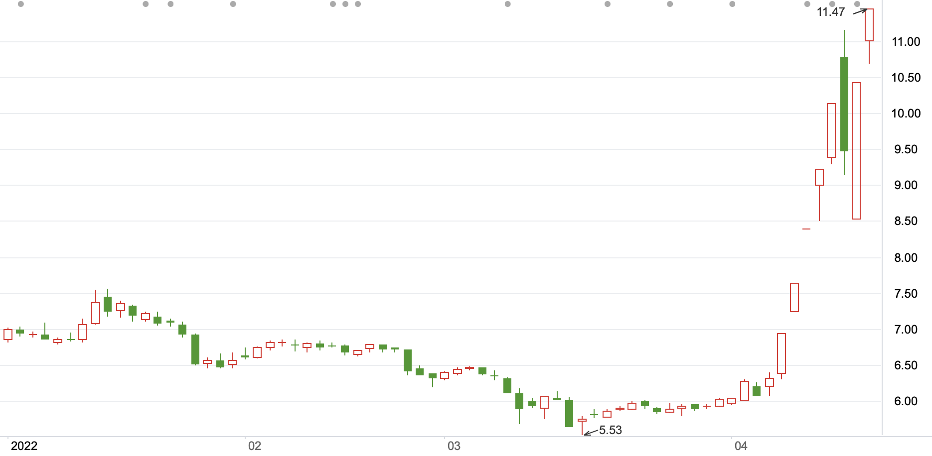 其中,步步高涨势最为惊人。在“零售+预制菜”双重概念的加持下,步步高在今年3月16日爬过历史低位后,股价也驶入快车道,从4月11日起连续斩获7个涨停板。