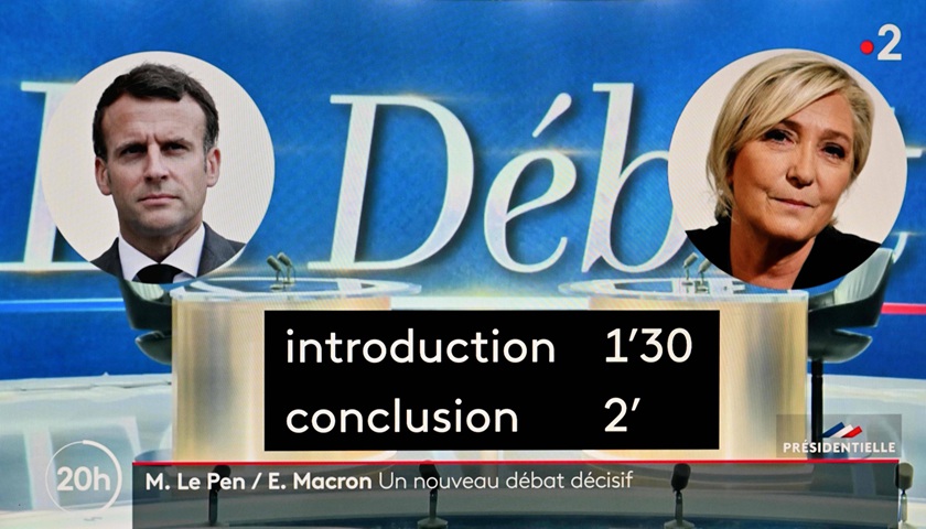 在总统大选第二轮投票前举行候选人电视辩论是法国的传统,从1974年开始持续至今。2017年法国大选时,进入第二轮投票的也是马克龙和勒庞。