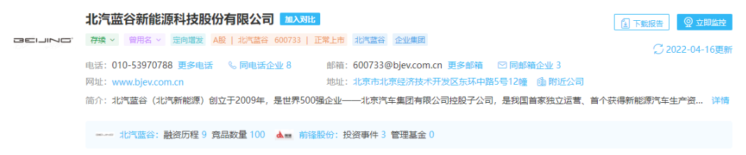 天眼查APP信息显示,北汽蓝谷创立于2009年,曾一度七年问鼎中国纯电汽车销冠。