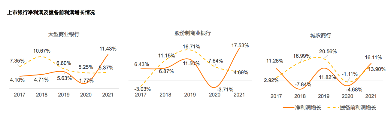 具体来看,六家大型商业银行实现净利润1.29万亿,同比增长11.43%,拨备前利润同比增长5.37%。八家股份制商业银行实现净利润3,974.01亿元,同比增长17.53%。城农商行实现净利润 1,424.46亿元,同比增长 16.11%。