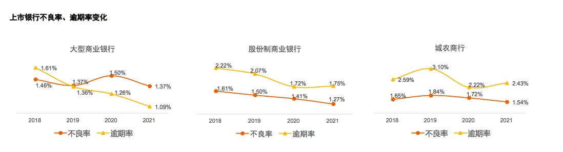 在资产质量方面,上市银行的不良率逾期率双降,资产质量压力不同。