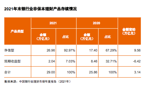 值得注意的是,2021年“理财新规”过渡期满,商业银行保本理财产品实现“清零”,也是净值化转型重要的里程碑。