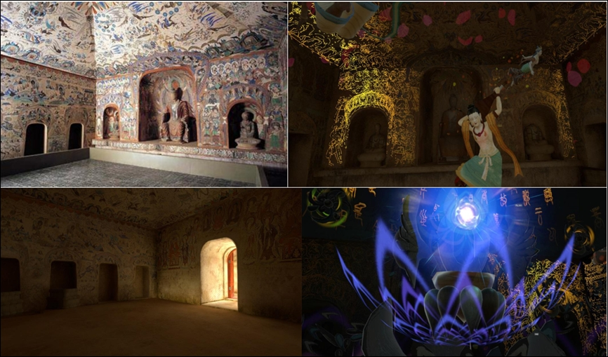 例如,中国动漫集团有限公司沉浸式交互动漫文化和旅游部重点实验室,于2018年申报立项了“基于虚拟现实科技的中国经典壁画创新性展示研究”项目。该实验室联合共建单位通过于VR虚拟现实技术研发制作的作品“敦煌奇幻之路VR”荣获中国金鸡百花电影节优秀作品奖;作品“敦煌飞天VR”“基于虚拟现实技术文物遗址互动展示”先后荣获2018、2019世界VR产业大会VR作品创新金奖。