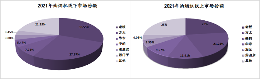 2021年,西门子在嵌入式整体线下市场中的占有率下滑3.18pct至31%,而老板和方太的占有率却分别提升了0.9pct和0.6pct,其中老板的市场份额达到31.64%,超车西门子,成为该领域的新王。