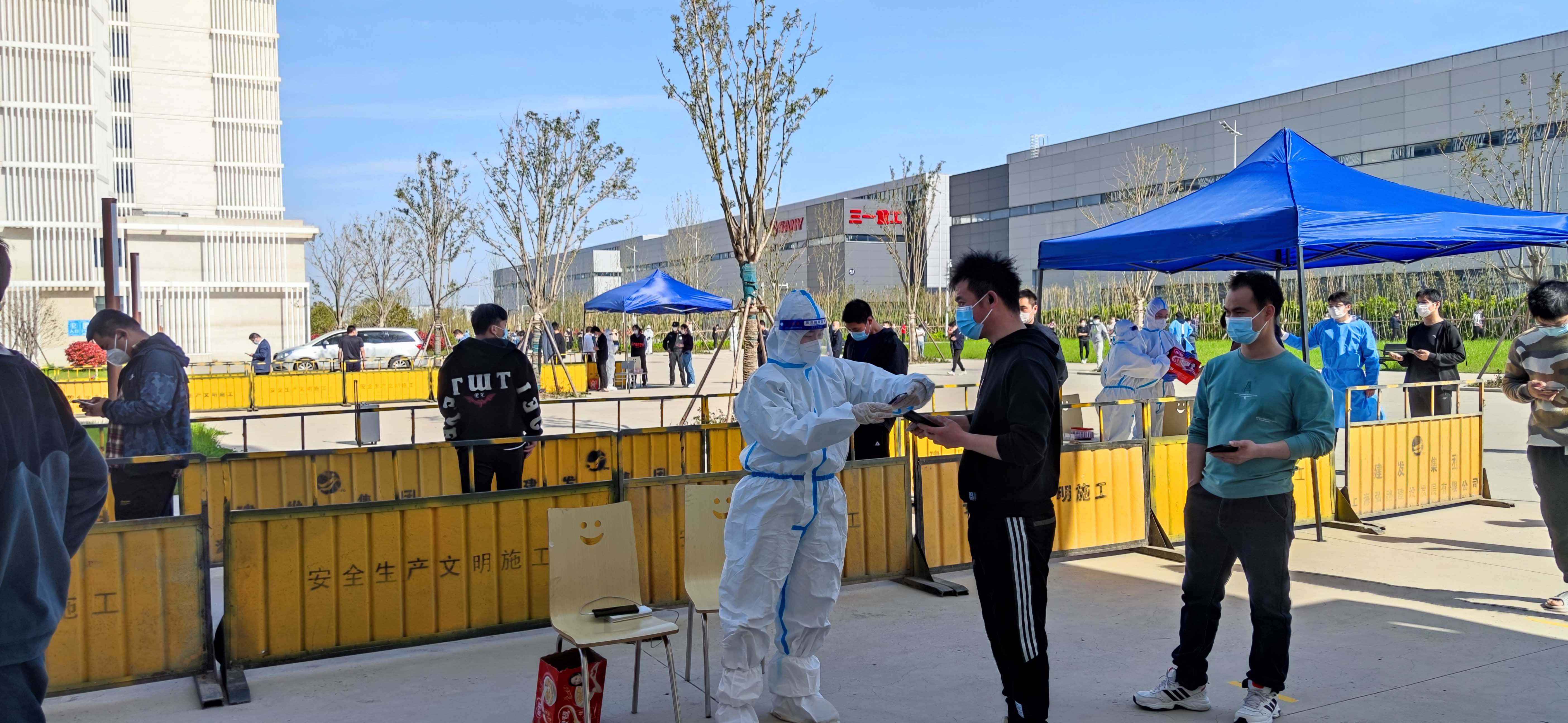 三一重机行政经理林伟对界面新闻表示,3月中旬随着疫情趋势严峻,该公司发布了全员闭环管理通知,召回部分住外员工到厂区内宿舍居住,并采取“公司至宿舍”两点一线闭环生产管理。