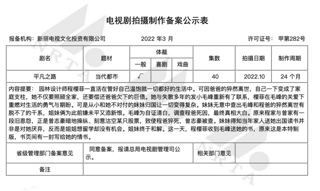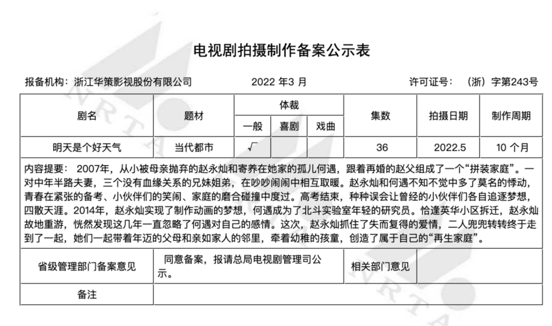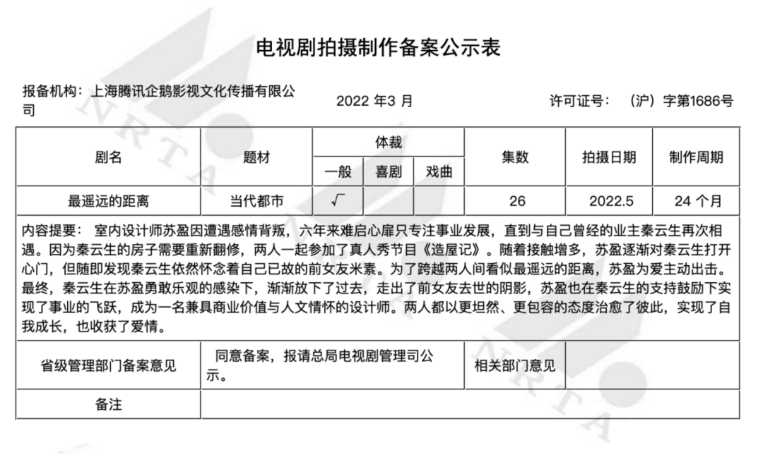 去年以来,受多种因素影响,古代题材剧目数量持续下降,这一影响延续至了今年:2022年3月古代题材剧目备案仅有一部,众多影视公司均将关注点投向了当代,相应的剧集有腾讯影业的《最遥远的距离》、新丽传媒的《平凡之路》、华策影视的《明天是个好天气》和哇唧唧哇的《鸣龙少年》等,前两者均为都市情感类型,《明天是个好天气》则聚焦于重组家庭。