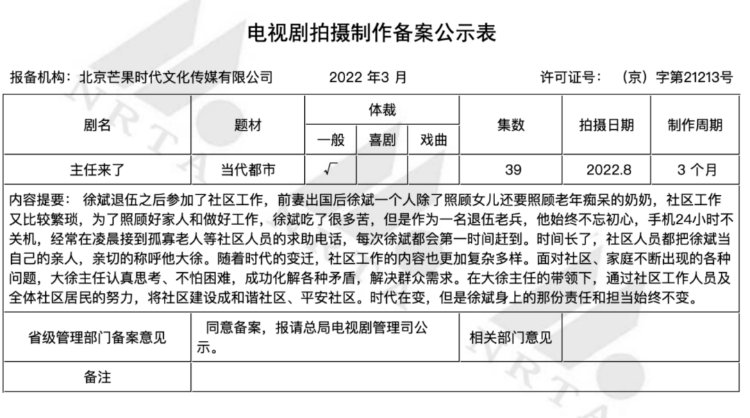 热播剧集的成功和第一季度电视剧的发行状况起到了一定的引导作用。2022年3月备案的电视剧中,当代题材对具有当下性的社会议题和现象均有涉及,北京芒果时代文化传媒有限公司的《主任来了》讲述了社区工作者的故事。在当代涉案题材类别里,由公安部金盾影视文化中心备案的《无形之刃》作为中国人民警察节献礼之作,以科技强警、守护网络安全为主题,开拓了刑侦题材的新类型,回应了网络空间安全治理的热点议题。