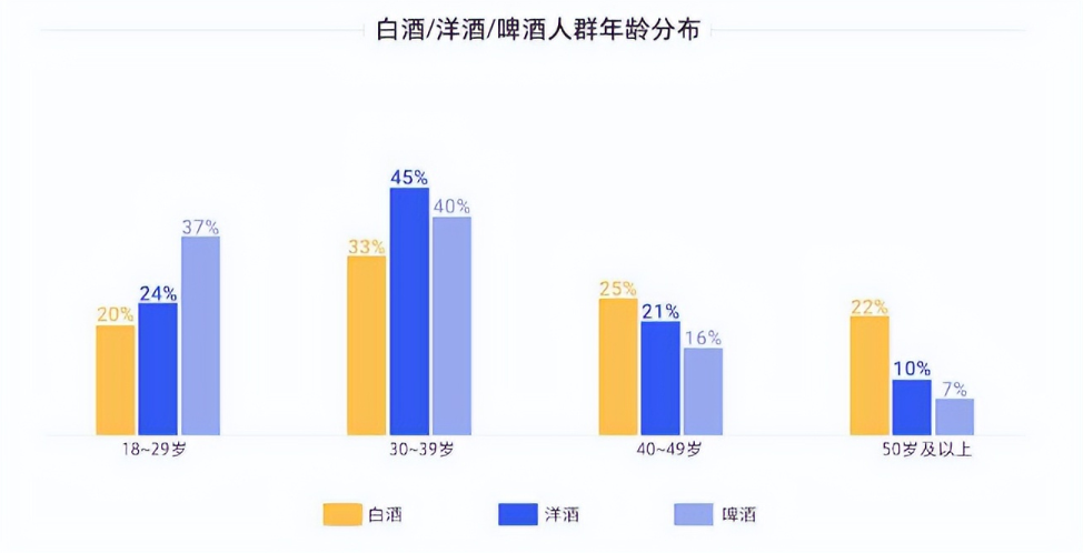 对于年轻消费者的态度上,茅台原董事长季克良曾表示,年轻人不喝茅台酒,那是还没到时候, 20 多岁还在玩,小孩子不懂事,不晓得需要好酒喝。相信这也代表了大多数中国白酒企业的心声。