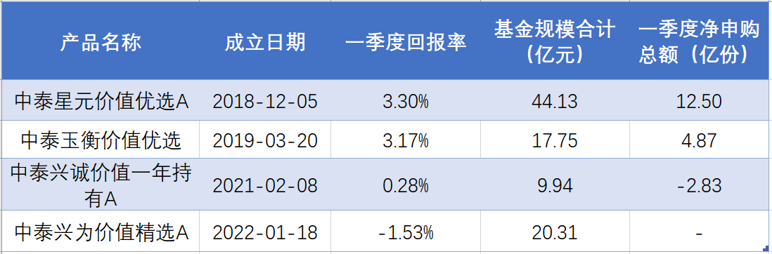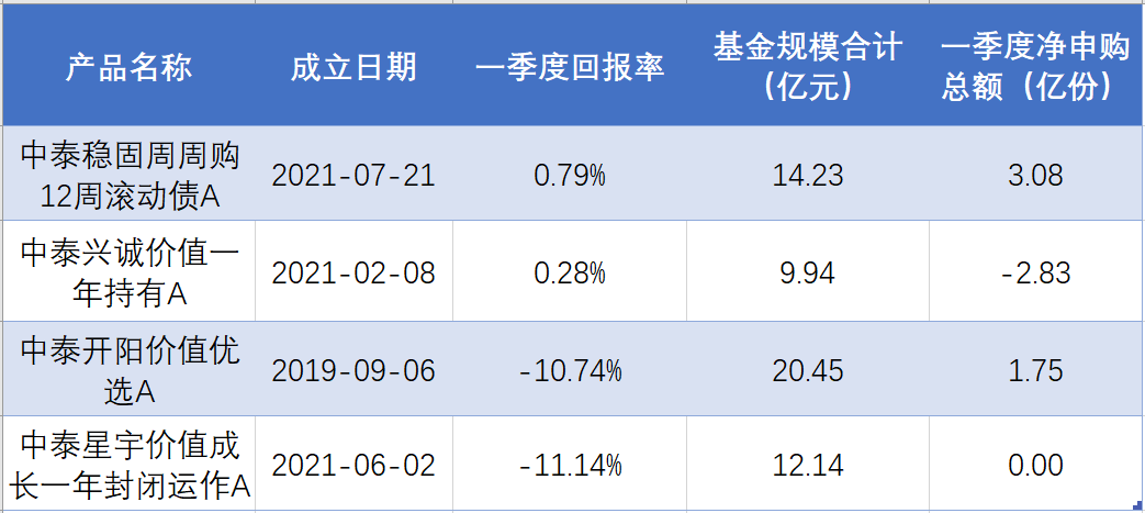 除了与姜诚共同管理的中泰兴诚价值一年持有,和与商园波共同管理的债基中泰稳固周周购12周滚动债,由他独自管理2只权益产品一季度回撤幅度均超10%,中泰开阳价值优选、中泰星宇价值成长一年封闭运作一季度回报率分别为-10.74%、-11.14%。
