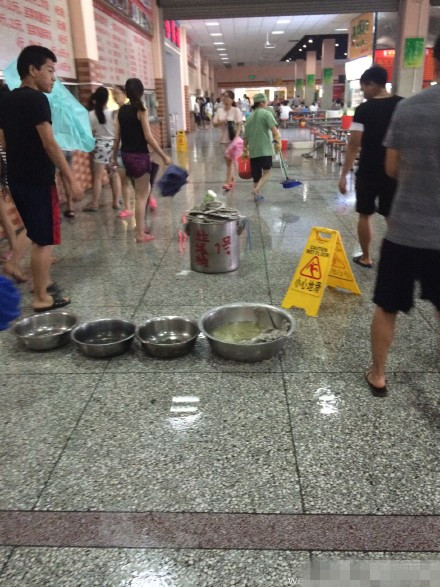 河南师范大学食堂漏雨。