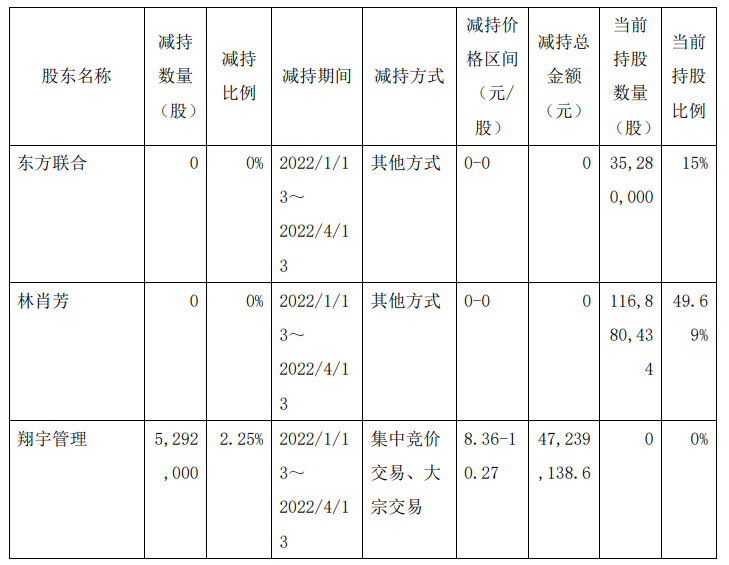 在安记食品股价暴涨之时,控股股东仍在减持期间内。公司去年12月22日披露称,公司实控人及一致行动人东方联合、林肖芳、翔宇管理三位股东拟合计减持不超过3%的股份。三位股东减持数量将合并计算。