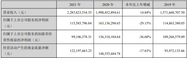 4月21日,北京元隆雅图文化传播股份有限公司(以下简称元隆雅图)发布2021年度报告。2021年,元隆雅图实现营业收入22.86亿元,同比增长14.84%;实现归属于上市公司股东净利润1.16亿元,同比下降29.15%;实现归属于上市公司股东的扣除非经常性损益的净利润9910.64万元,同比下降36.60%。
