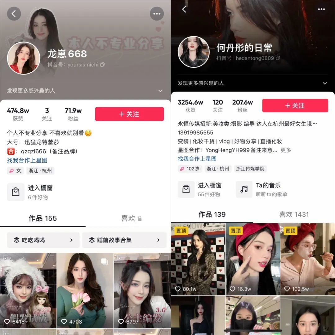 最明显的就是依靠变装、舞蹈走红的颜值类博主,此类内容变现具有明显的局限性,为了实现更好的商业化,他们的统一做法就是单独开设一个分享日常及美妆的抖音小号。如“迅猛龙特蕾莎”的美妆小号“龙崽668”,这个于去年4月份开设的小号目前累积粉丝71.9万,据巨量星图显示,视频报价也标到了4万;还有“变装女王”何丹彤,其小号“何丹彤的日常”目前报价高达18万。