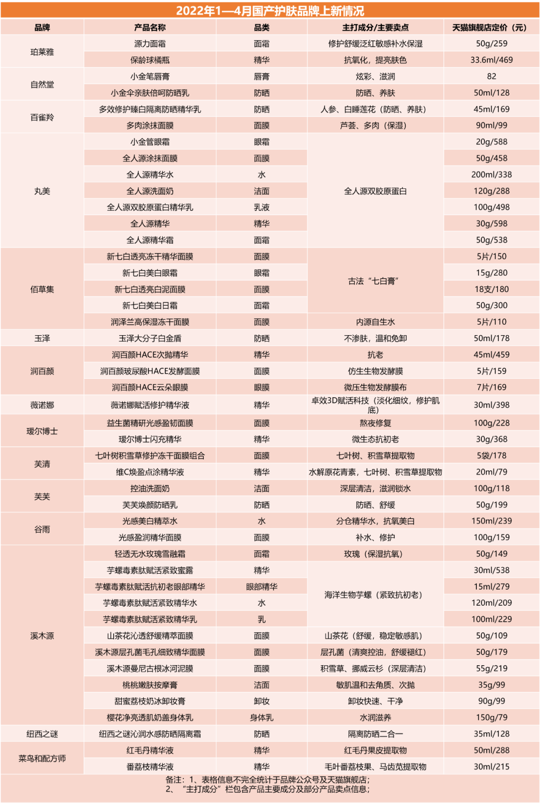 据不完全统计,今年以来,上述15个品牌共推出了45款新品,涵盖面膜、精华、水乳霜等多个品类,其中部分新品已展露出强劲的增长势头。比如,珀莱雅今年1月推出的源力面霜,天猫店月销已达1万+;润百颜于3月推出的HACE次抛精华,天猫店月销也已达到9000+。