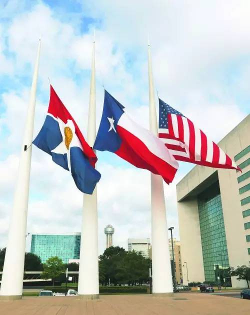 7月8日,达拉斯市政厅悬挂半旗致哀。(图片来源:美联社)