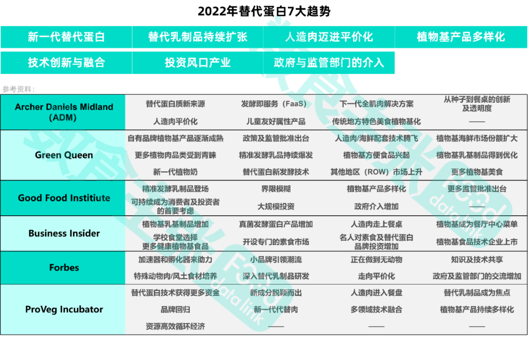 为此,ADM、Green Queen、Good Food Institute、Business Insider、Forbes、ProVeg Incubator基于丰厚的行业经验以及对消费市场的敏锐洞察均给出了独到的趋势预判。