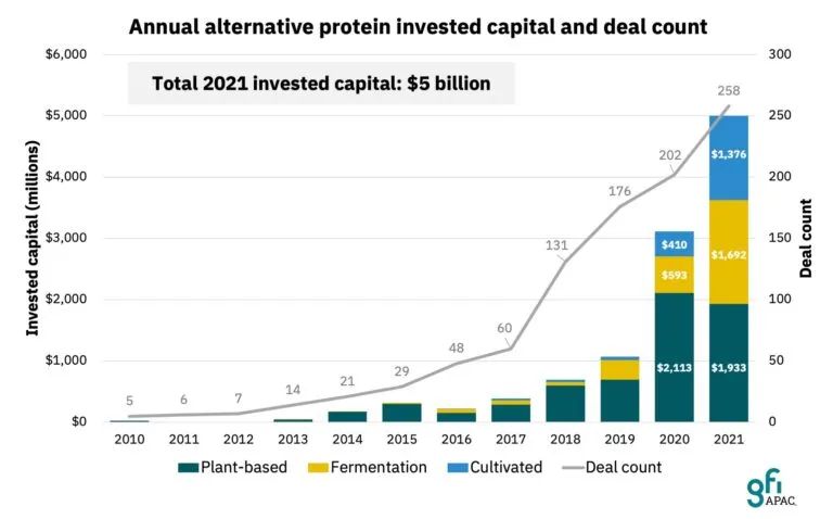 2022年到来,预计除了机构投资者之外还将迎来更多的IPO和收购,以及越来越多以个人和名人名义投资替代蛋白相关产品。
