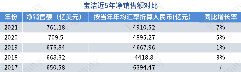 而此前宝洁2021年净销售额为 761 亿美元(约合人民币4898亿元),即2022年宝洁净销售额将达到791亿美元(约合人民币5091亿元)至799亿美元(约合人民币5143亿元)。