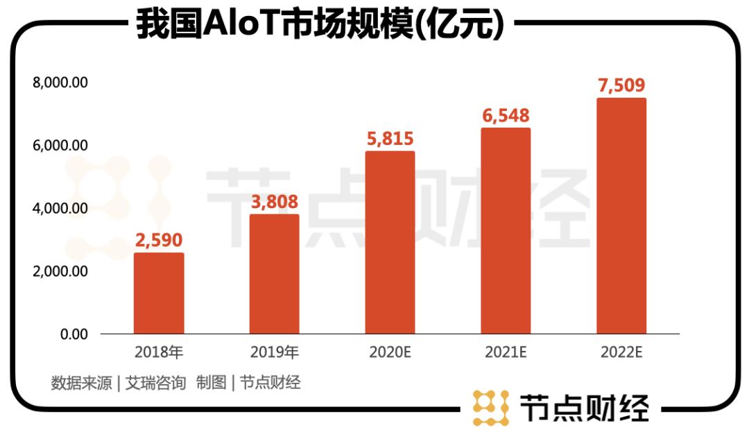 据艾瑞咨询数据显示,2020年中国AIoT市场规模超5800亿元,同比增长53%,预计2022年市场规模将达到7509亿元,2018至2022年的年均复合增长率30.49%,是一条高景气度赛道。