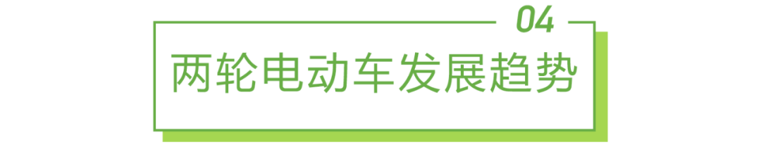 发展趋势:在高质量发展的时代背景驱动及消费升级需求推动下,两轮电动车产品向高品质、智能化、个性化发展。电池续航、性能进一步提升,车型设计更加符合细分用户骑行场景需要;智能化技术应用水平提升,使用体验升级。在智能化发展趋势下,两轮电动车的市场竞争将逐渐导向产品智能化竞争以及基于智能两轮电动车的服务生态的竞争。