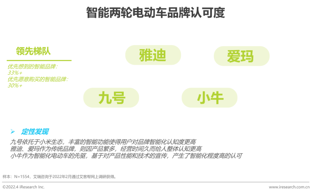 九号、小牛、雅迪、爱玛是智能两轮电动车领先梯队