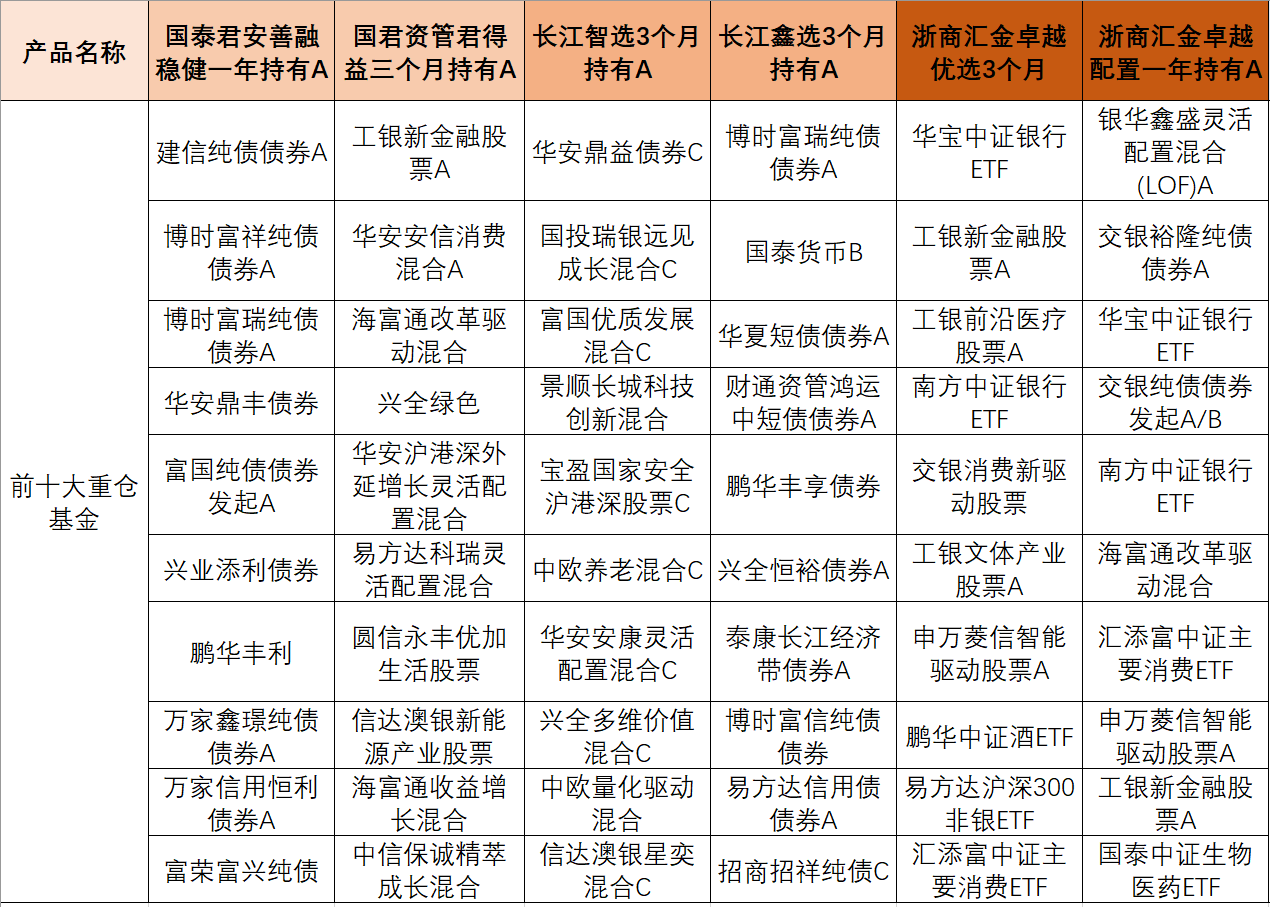 长江资管旗下的长江鑫选3个月持有更加追求平稳,前十大重仓基金中,除了一只货币基金,其余9只均为债基。