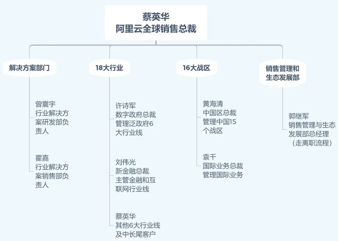 ▲调整后的阿里云销售体系架构(根据公开信息整理,如有谬误欢迎指正)
