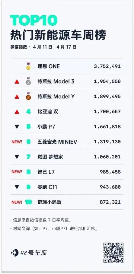 根据42号车库最新的微信指数来看,前五的新能源车中有3辆都处在这一区间。而ET5在蔚来的产品规划中大概率也将扮演这一角色。