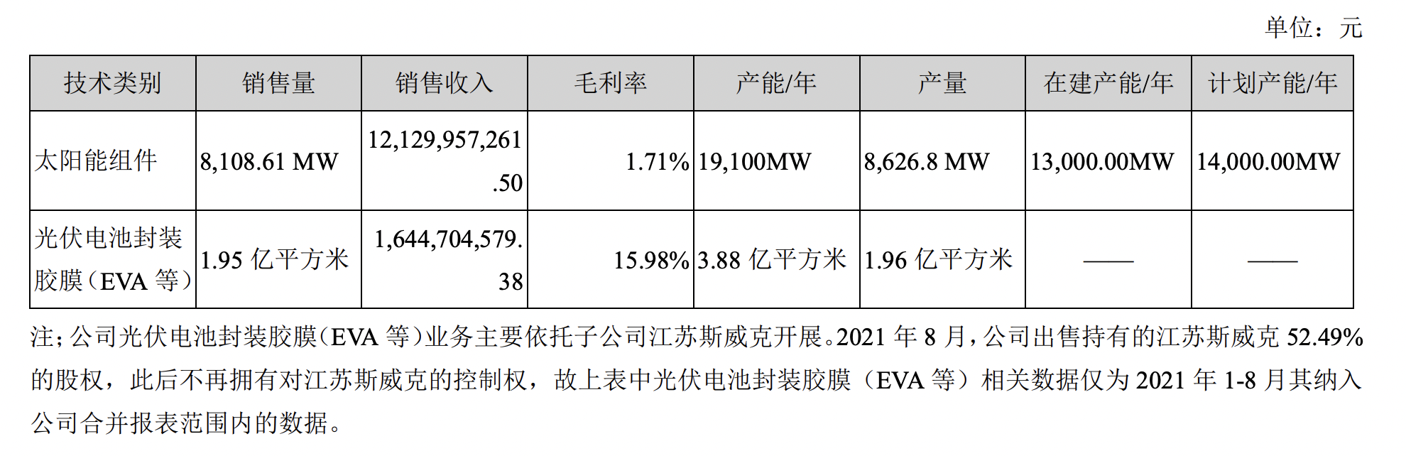 东方日升称,去年上游原材料价格持续上涨,但其组件订单销售价格提前签订且销售价格的增长速度缓于上游,造成组件销售毛利较薄,产能不能完全释放。