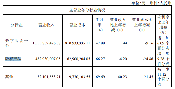 掌阅2021年主营业务分行业情况