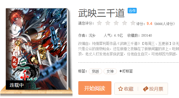 《武映三千道》在腾讯动漫平台上人气6.5亿,收藏数28万