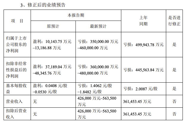 4月22日晚间,泰禾集团发布2021年度业绩预告修正公告。前次业绩预告称,预计2021年度实现归属于上市公司股东的净利润为1.01亿元至1.31亿元。修正后的业绩预告称,预计2021年归属于上市公司股东的净利润为亏损35亿元至46亿元。上年同期,泰禾集团净利润亏损49.99亿元。