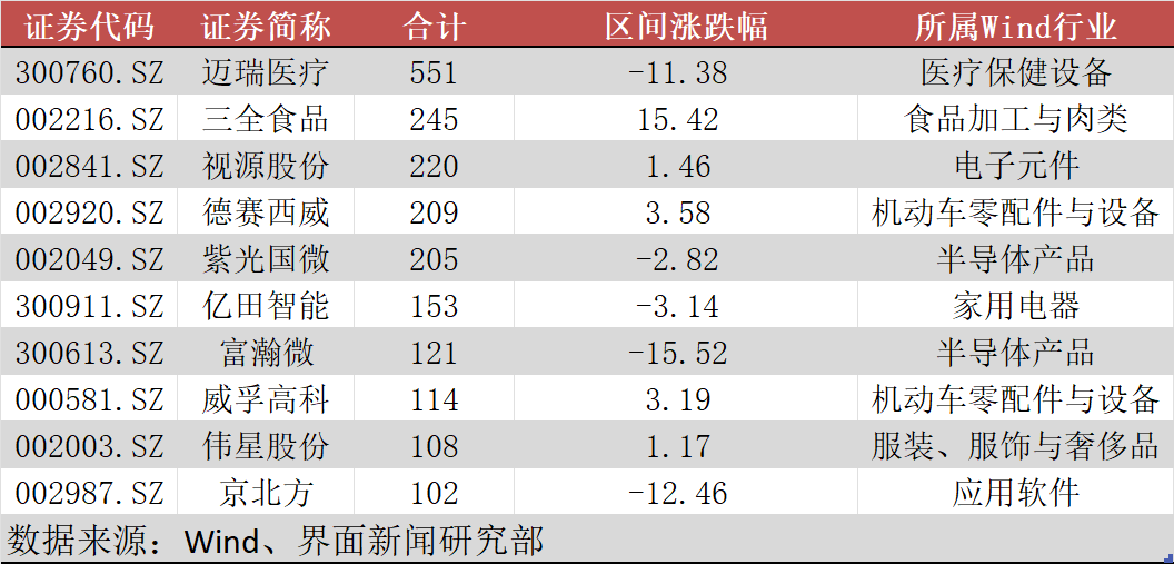 “器械茅”迈瑞医疗(002557.SZ)本周热度最高,共吸引了551家机构参与调研,包括113家公募基金、21家险资、72家券商以及219家投资机构。
