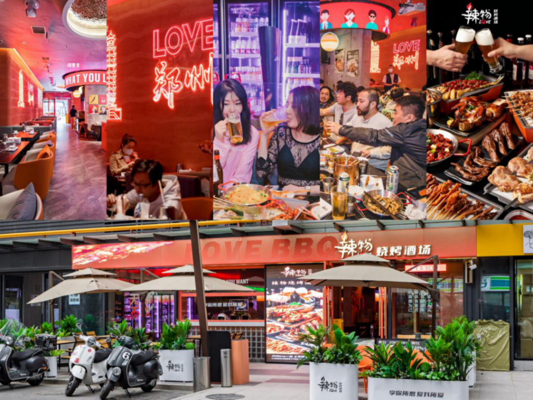 在郑州,由餐饮老炮做的“辣物”烧烤酒场,还有带火炒虾尾品类的郑喜旺烧烤,2022年东区首店都选择了“烧烤+酒场”创新业态,用社交打卡属性更强的欢聚环境,升级为2.0版的“烧烤店+小酒馆”,拥抱Z世代们的新鲜夜生活。