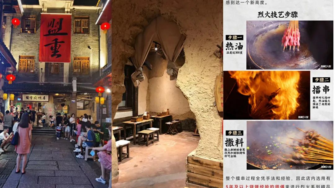 1、在场景设计上,做符合都正街古风特色的“烧烤+小酒馆”。2017年就跟合众合合作打造了国潮风的空间。结合神笔马良的传说,店内有专门的设置可以穿汉服打卡,写写毛笔字、弹弹古筝。