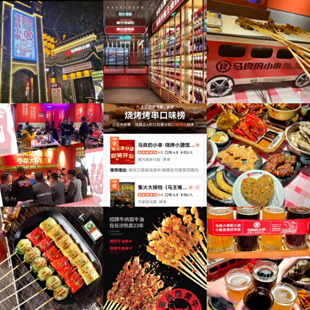 在长沙大众点评、抖音烧烤类综合榜单上,“马良的小串·烧烤小酒馆”常年排名第一,食材、环境、口味、服务均值在4.8分。每次疫情爆发后,也是恢复人气最快的品牌之一。