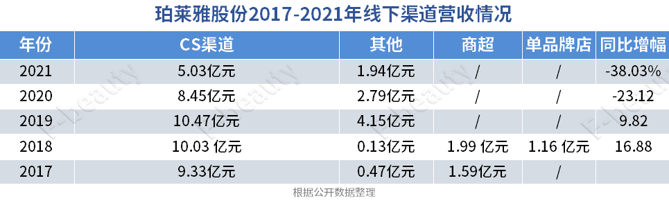 众所周知,珀莱雅起家于CS渠道,从2003年到2013年的十年间,CS渠道都是珀莱雅的唯一主力销售渠道。