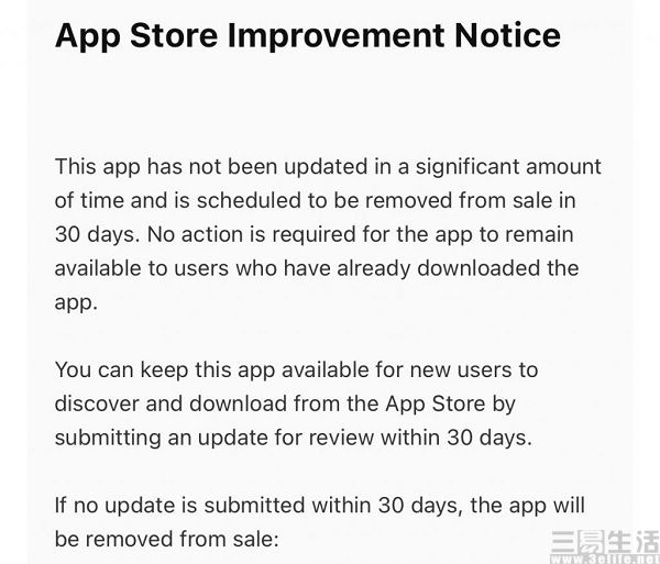 日前有消息显示,苹果App Store正在清理那些长期不更新的iOS应用。据悉,苹果方面正在实施一项持续性的APP评估流程,对于一些不按照预期运行、不遵循当前审查指南或已经过时的APP,将全部进行下架处理。此外,苹果方面正在向部分“僵尸应用”的开发者发送邮件,提醒他们需要在30天内更新APP,否则APP将被立即下架。而在这一邮件中则显示,“你可以通过在30天内提交更新供审查,让新用户从应用商店发现和下载这款应用。”