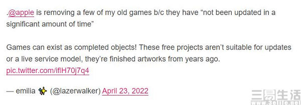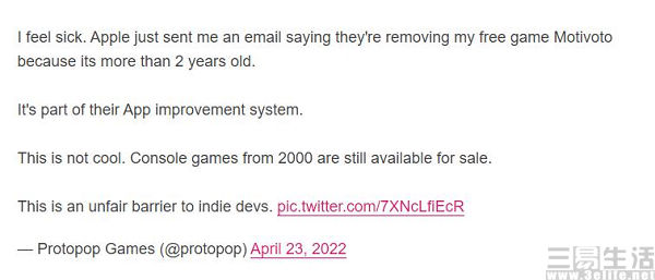 目前,已经有相当数量收到这一邮件的开发者在社交平台上吐槽。诸如“这对独立开发者来说是一个不公平的障碍”,以及“我的游戏可以作为完成品而存在!这些游戏不适合更新或实时服务模式,它们是多年前完成的作品”这样的言论,也几乎是随处可见。