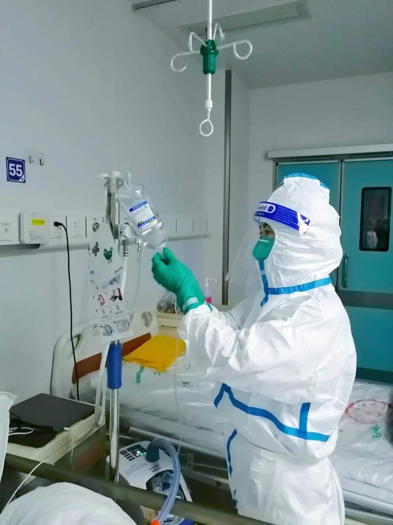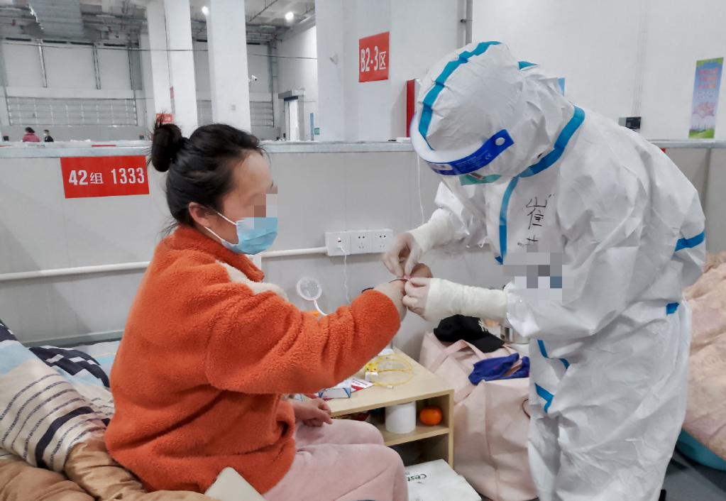 上海市公共卫生临床中心工作人员正在为患者输液。(受访者供图)