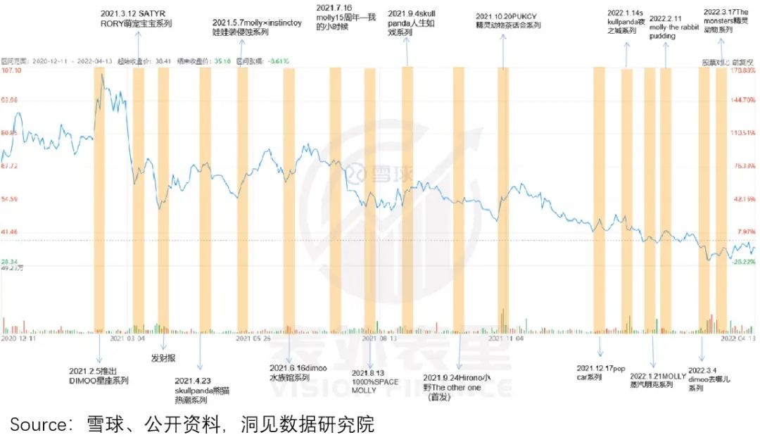 但我们在《李宁反手撕掉国潮标签》一文论述过,此类生意,由于产品经营波动性大,强替代性(抄袭、模仿)等风险,市场估值普遍很低。这也就不难理解,为何泡泡玛特的股价持续下跌。