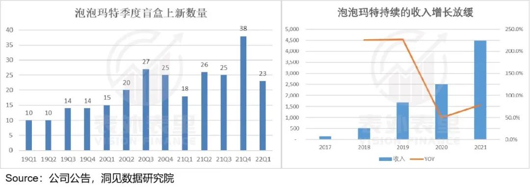 泡泡玛特也出现了类似情况,如下图,虽然IP形象上新在加快,但收入增速相比之前,已有所放缓。